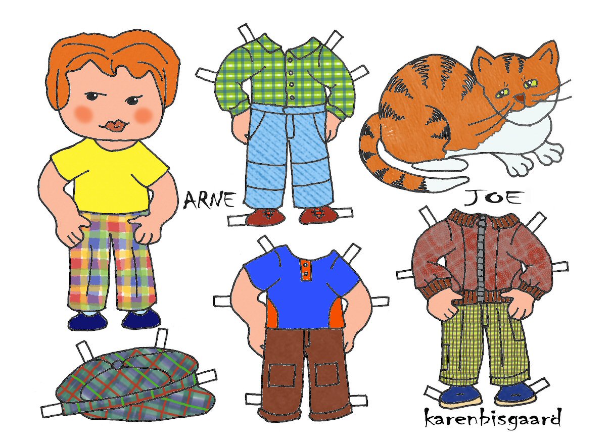Lily and Arne Doodle-like Paper Dolls to Print in Colours and to Colour.